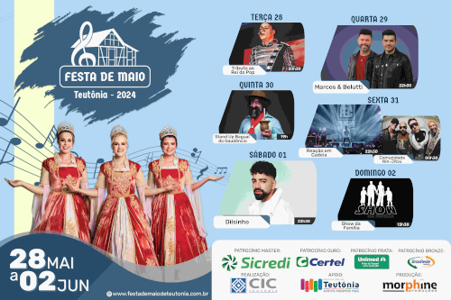 O representante da Morphine Produções, Ademir Nunes, agradeceu a confiança. “Esta é a terceira edição que participamos da produção da Festa de Maio, estamos lisonjeados pela oportunidade de integrar esta programação grandiosa e tão importante, que movimenta toda região”, enumerou.