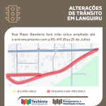 A primeira delas se refere à ampliação da mão única da Rua Major Bandeira, que passará a ter sentido único também no trecho entre a Rua 7 de Setembro e o entroncamento com a RS-419 (Rua 25 de Julho) – alteração que contemplará também a Rua Artur Reinoldo Graeff. Outro trecho a ser modificado é o da Rua Pedro Schneider, entre as ruas Major Bandeira e Fernando Ferrari, proximidades do antigo Centro Cultural 25 de Julho e da Unidade Básica de Saúde de Languiru.