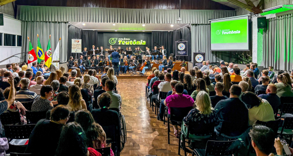 O Conjunto Instrumental do Colégio Teutônia e o Grupo de Danças Folclóricas de Estrela iniciam no domingo (27) a Turnê Brasil 2024. O lançamento ocorreu na noite desta quinta-feira (24), quando o show “Caminhos da Cultura” foi apresentado no Auditório Central do Colégio Teutônia para grande público.