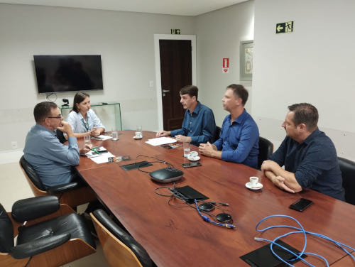 No Banco Regional de Desenvolvimento do Extremo Sul (BRDE), a comitiva dialogou com a coordenadora-geral de Comunicação, Juliana Roll, e com o assessor de Marketing, Aldemir Laury, sobre a viabilização de patrocínios por meio da Lei Rouanet.
