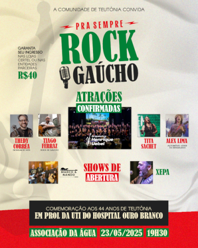 Pra Sempre Rock Gaúcho, além de celebrar os 44 anos de Teutônia, representa o início de uma grande mobilização comunitária e voluntária em prol do Pólo de Saúde: |