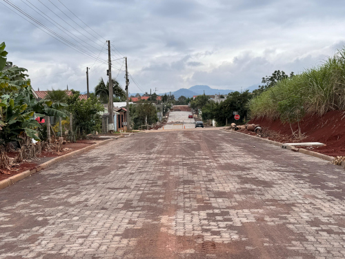 A Secretaria de Obras atua em diversas frentes, e uma delas é a pavimentação de ruas, de forma estratégica e gradativa. No bairro Alesgut, a Rua Bruno Wiebusch, trecho de 266,00 m de extensão, entre as Ruas Theobaldo Konrad e Frietholdo Altevogt, recebe a pavimentação em blocos de concreto intertravados, que interliga a via principal com o loteamento Castro.