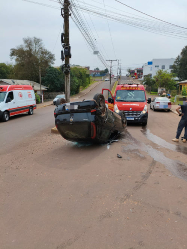 Uma colisão entre dois veículos, seguida de capotamento, deixou uma condutora ferida, na manhã desta segunda-feira, 18, no bairro Canabarro, em Teutônia.