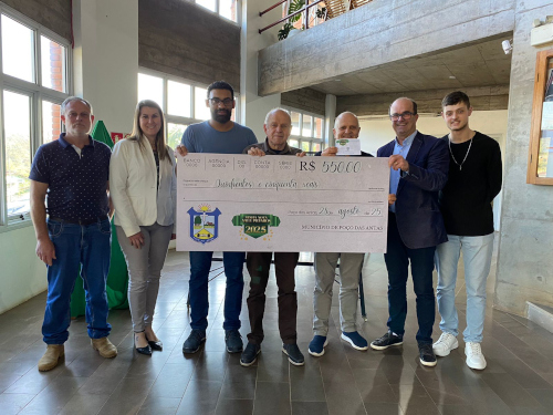 No fim da tarde desta quinta-feira, dia 28 de agosto, foi realizado o quarto sorteio da campanha “Minha Nota Vale Prêmios 2025”, no saguão da Prefeitura Municipal de Poço das Antas. O sorteado foi Afonso F. Schneider, morador do Município, que recebeu o prêmio de R$ 550,00.