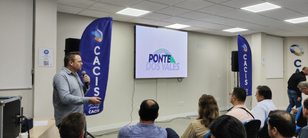 A forte e ininterrupta chuva que caiu durante toda a manhã em Estrela não impediu a presença de diversas autoridades das regiões dos vales do Taquari e Rio Pardo à sede da Câmara do Comércio, Indústria, Serviços e Agronegócio (Cacis). O auditório da associação estrelense recebeu cerca de cem pessoas entre políticos, empresários, líderes de entidades e representantes de diversos setores da comunidade em geral, além da imprensa, para prestigiar o lançamento da Campanha a “Ponte dos Vales”. A marca visual da campanha, com selo de apoio e slogan – “A ponte que todos precisam! Para nunca mais parar” – foram apresentados pela Agência de Publicidade Falara. Dados técnicos, como a extensão total do projeto (3.1mil metros – sendo 1.2mil somente de ponte); altura (até 36 metros – nas vigas 2 metros acima da enchente de 2024) e valor estimado (R$ 280 milhões) também foram trazidos aos presentes.