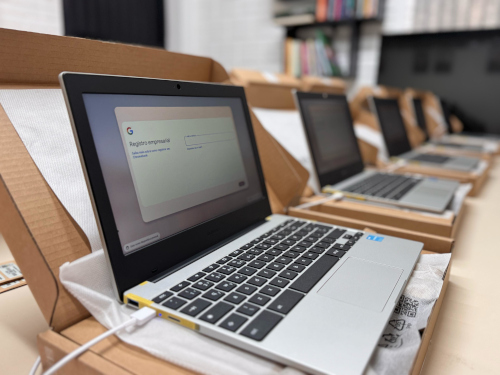 <p>No Dia Nacional da Educação, 28 de abril, a Prefeitura de Teutônia realiza entrega oficial de 240 chromebooks à professores, orientadores e supervisores das escolas municipais de Teutônia. Esta iniciativa representa um importante marco em direção à modernização da educação e ao aprimoramento do processo de ensino aprendizagem. Os equipamentos têm a finalidade agilizar e facilitar o trabalho dos profissionais, principalmente, quanto ao desenvolvimento de práticas pedagógicas inovadoras e eficazes. O investimento total foi de R$ 310 mil reais.</p>