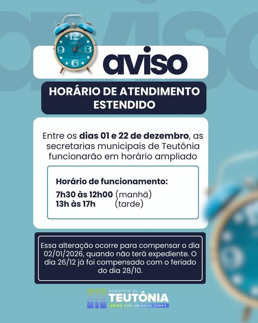 A Administração Municipal informa que, entre os dias 1º e 22 de dezembro de 2025,