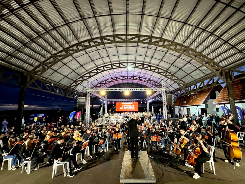 <p>O encerramento, realizado na noite deste domingo na Prefeitura de Teutônia, celebrou a força coletiva da música com apresentações da Big Band, formada por músicos dos instrumentos de sopro; da Orquestra Acadêmica, composta por alunos pré-selecionados; e da Grande Orquestra do Festival, reunindo todos os estudantes e professores. As três formações estiveram sob regência do maestro Gilberto Salvagni. A programação também contou com apresentação especial do Coral Municipal Infantojuvenil, sob regência de Marlon Gausmann.</p>