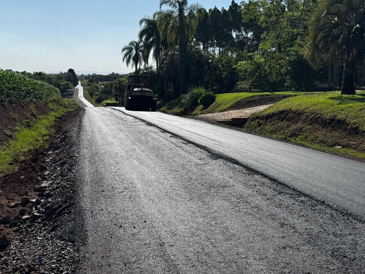 Foi concluída com êxito a obra de recuperação asfáltica na Estrada Geral da Linha São Jacó. O serviço, que abrangeu 4,69 quilômetros de via, visa garantir mais segurança, conforto e fluidez no tráfego