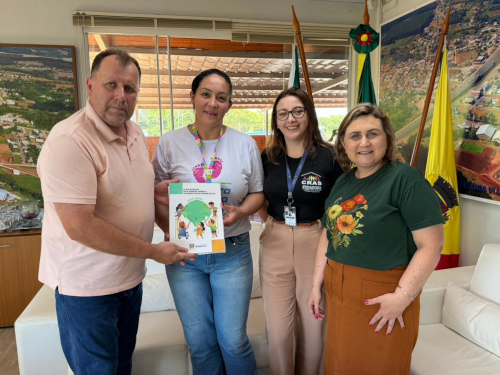 <p><br />A reunião com o chefe do executivo contou com a presença da representante do Grupo Técnico Municipal (GTM), a assistente social do CRAS,Camila Regina Brandão, a Secretária da Saúde, Cidadania e Atenção Social, Graciela Manini de Azevedo, e a visitadora do PIM, Caroline Roloff da Costa.</p>