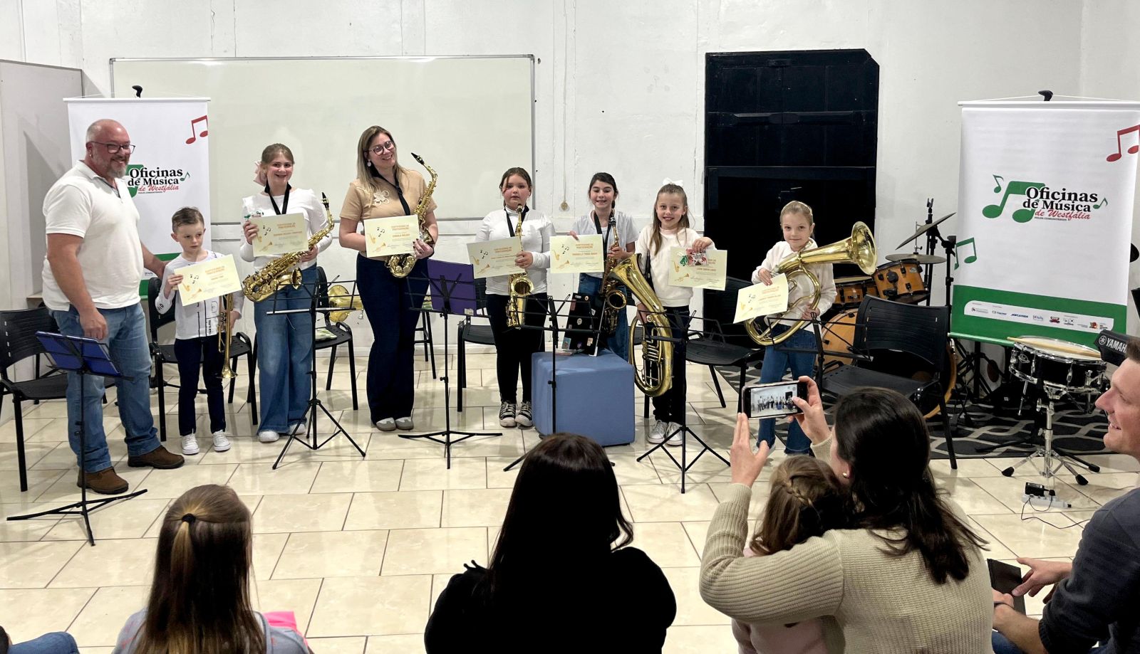 <p>Atualmente, mais de 100 alunos participam das diferentes oficinas de instrumentos musicais em Westfália, contemplando flauta soprano, flauta transversal, clarinete, saxofone, trompete, trombone, tenor horn, teclado, acordeon, violão, guitarra e baixo elétrico. O projeto abrange crianças, jovens e adultos, sem pré-requisitos para participar.</p>