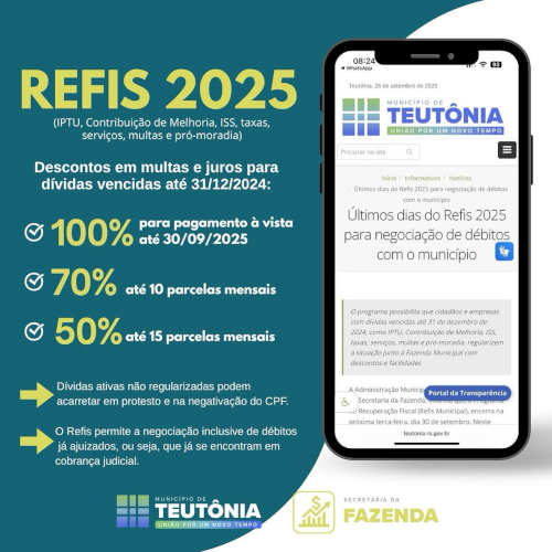 <p>O prazo para negociação dos débitos municipais por meio do REFIS encerra na terça-feira, 30 de setembro.</p>