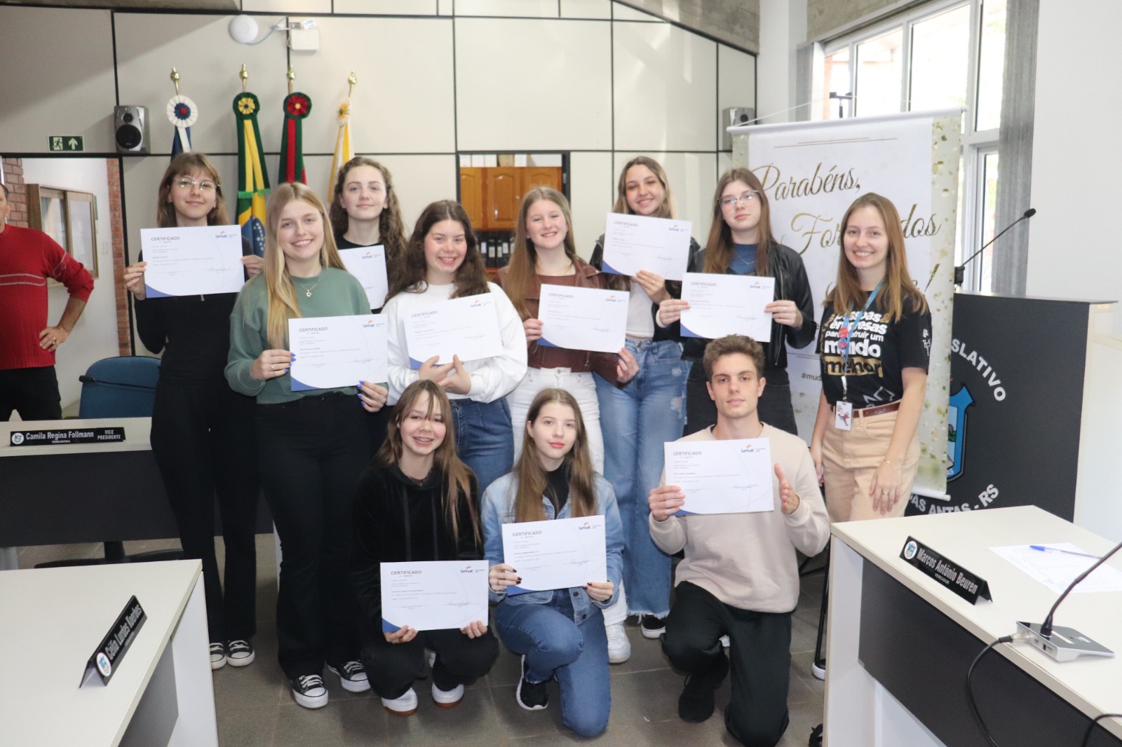 <p>Onze jovens de Poço das Antas concluíram o curso “Vida & Carreira”, promovido pelo Centro de Referência de Assistência Social (CRAS) em parceria com o Senac de Lajeado. A solenidade, realizada nesta quarta-feira, dia 24 de setembro, na Câmara de Vereadores, reuniu autoridades, familiares e representantes da instituição de ensino para celebrar essa importante etapa.<br />Com 24 horas/aula, a capacitação, ministrada pela professora Luana Johner, ajudou os participantes a traçar um plano de vida e carreira, identificar oportunidades, se preparar para entrevistas e fortalecer o autoconhecimento. Receberam certificados: Amanda Steffen, Andressa Luzia Kerber, Bruna Natalia Kerber, Estefani Tainara Fritzen Soares, Gabriela Kober, Graziela Brinckmann Lutz, Igor Ludwig Schwingel, Isadora de Camargo Schneider, Otávio Lopes Amaral, Tailini Klein Flach e Thayla Valentina Rossi.<br />A professora Luana Johner ressaltou que o curso foi um importante período de troca e aprendizado. “Vocês saem daqui mais confiantes e preparados para transformarem seus sonhos em realidade. Foi uma honra estar com vocês nestas últimas semanas”, frisou.<br />O secretário de Assistência Social, Volmir Schneider, destacou que investir na juventude é investir no futuro de toda a comunidade. “A dedicação de cada aluno prova que acreditamos em seu potencial. Novas oportunidades surgirão em breve, para cursos sugeridos pelos próprios jovens”, anunciou.<br />O secretário de Administração, Indústria e Comércio, Romeu Forneck, reforçou a importância de mais esta promoção voltada à profissionalização dos jovens. “Iniciativas como essa oferecem ferramentas essenciais para quem começa a trilhar o caminho profissional. Parabéns a todos”, parabenizou.<br />Por fim, o prefeito de Poço das Antas, Glicério Ivo Junges, enalteceu o curso como fundamental para o futuro dos jovens do Município. “Acompanhar a preparação dessa nova geração para o mercado de trabalho nos enche de orgulho. E sempre que tiverem oportunidade, se aperfeiçoem. Estudo e curso nunca é demais”, destacou.<br />Ao final da solenidade, houve momento de confraternização entre os participantes.</p>