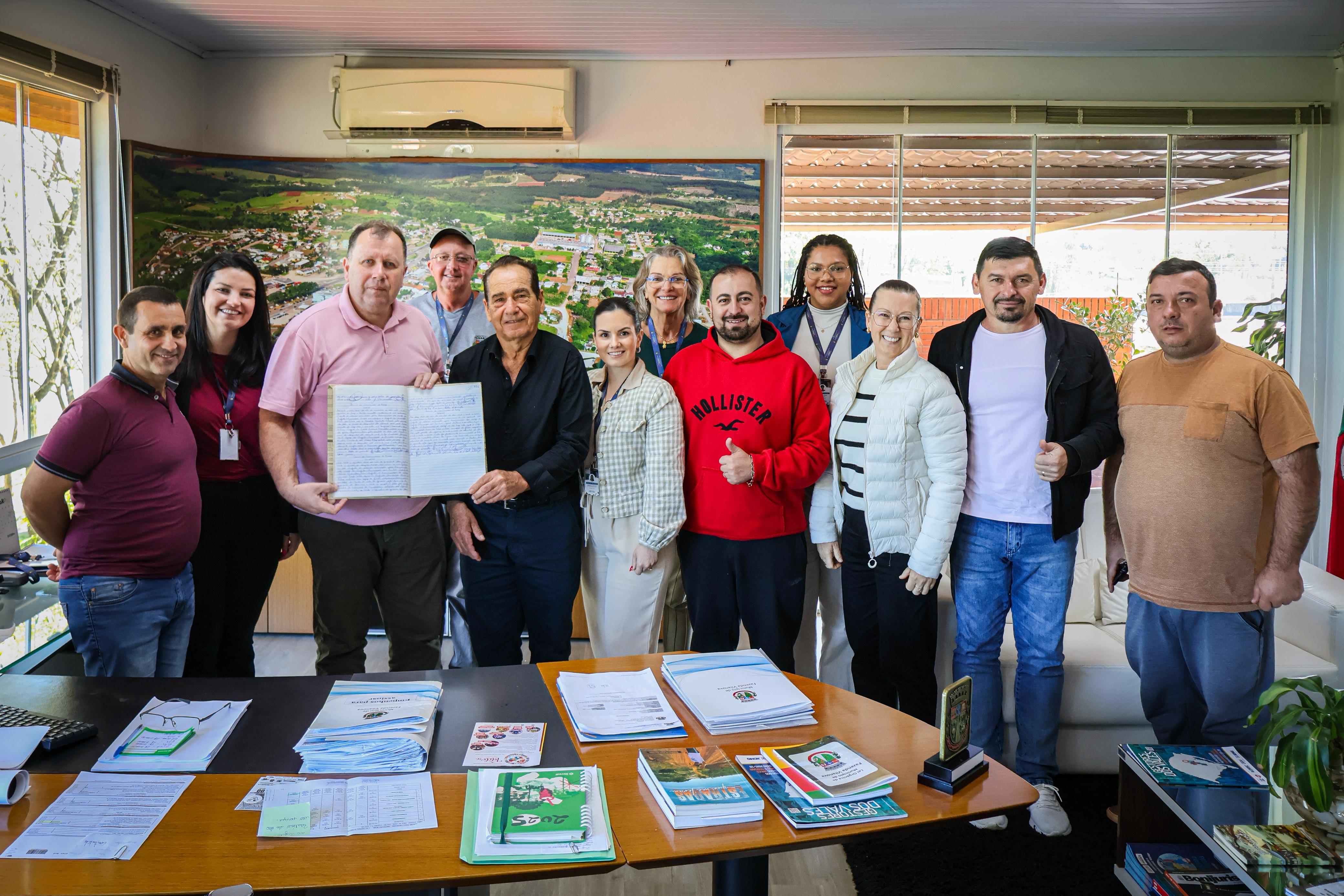 Prefeito César Juliano Bloemker recebeu, das profissionais da equipe do programa Primeira Infância Melhor do município, exemplar do documento que orienta sobre ações voltadas às crianças de 0 a 6 anos