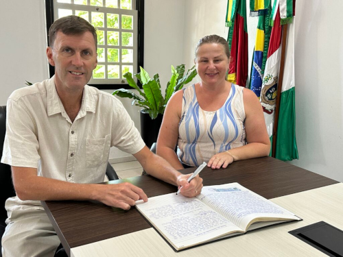 <p>O ato foi formalizado com a assinatura da ata do termo de transmissão de cargo, subscrita pelo prefeito e pela vice-prefeita, marcando oficialmente o retorno de Bloemker à chefia do Executivo Municipal.</p>