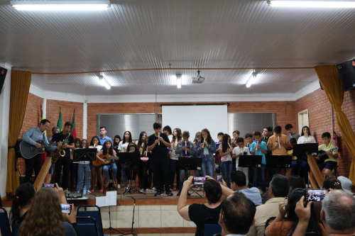 <p>Na noite de terça-feria, dia 09/12, mais um momento grandioso para a cultura de Fazenda Vilanova. Foram certificados 45 alunos, entre crianças, jovens e adultos, das Oficinas de Música, ministradas pelo Professor e Maestro Celso Luiz Gauer. As oficinas são oferecidas de forma gratuita, pela Administração Municipal, através da Secretaria da Educação e Cultura. Acontecem encontros semanais, tendo como local o auditório da EMEF da Rosa Cardoso.</p>