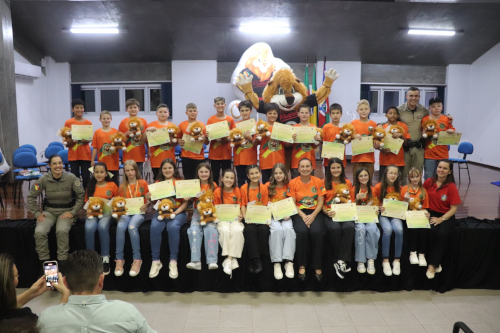 <p><br />Durante a solenidade, foram entregues reconhecimentos especiais aos destaques desta edição do Proerd. A aluna destaque de 2025 foi Isabelli Kunzler, enquanto que as melhores redações foram de Kauane Luiza Anschau, do 5º Ano A, e Daiane Schrammel Christ, do 5º Ano B.</p>