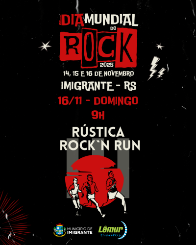 Imigrante se prepara para receber a 3ª Rock’n Run, evento que combina a paixão pela corrida com a energia contagiante do rock’n roll. A prova será realizada no 16 de novembro, um domingo, com largada no Ginásio Municipal. A iniciativa celebra o Dia Internacional do Rock And Roll e promete movimentar atletas, famílias e fãs da música em um fim de semana cheio de atividades e shows.