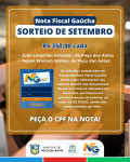 O sorteio do mês de setembro do programa Nota Fiscal Gaúcha (NFG), realizado no fim da manhã do dia 25, contemplou dois moradores de Poço das Antas. Os ganhadores foram João Leopoldo Schuster e Rejani Weirich Welter, que receberão, cada um, R$ 350,00.