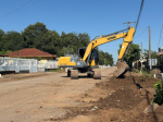 As equipes da Secretaria de Obras finalizam os serviços de terraplanagem, nivelamento da via, retirada de borrachudos e canalização. Na sequência, a empresa responsável inicia a colocação dos blocos intertravados de concreto na última quadra da rua.