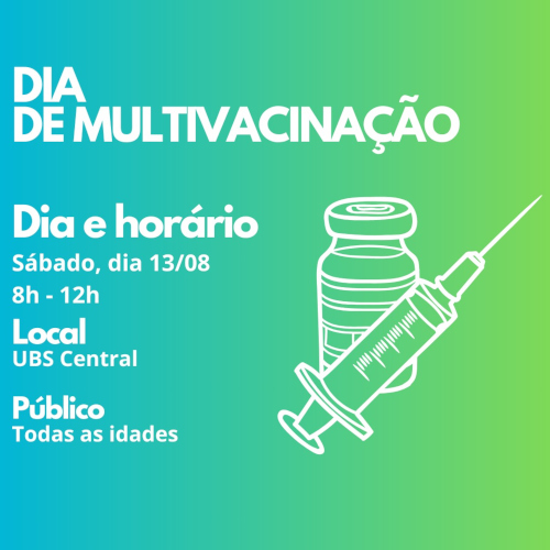 <p>A Saúde também alerta para a importância da imunização contra a Covid. A mesma pode ser realizada diariamente, de segunda a sexta, das 8h às 15h, no Posto da Boa União. Em caráter excepcional, será encontrada na ação especial de multivacinação que será realizada agira dia 13/07, no Posto Central, das 8h às 12h.</p>