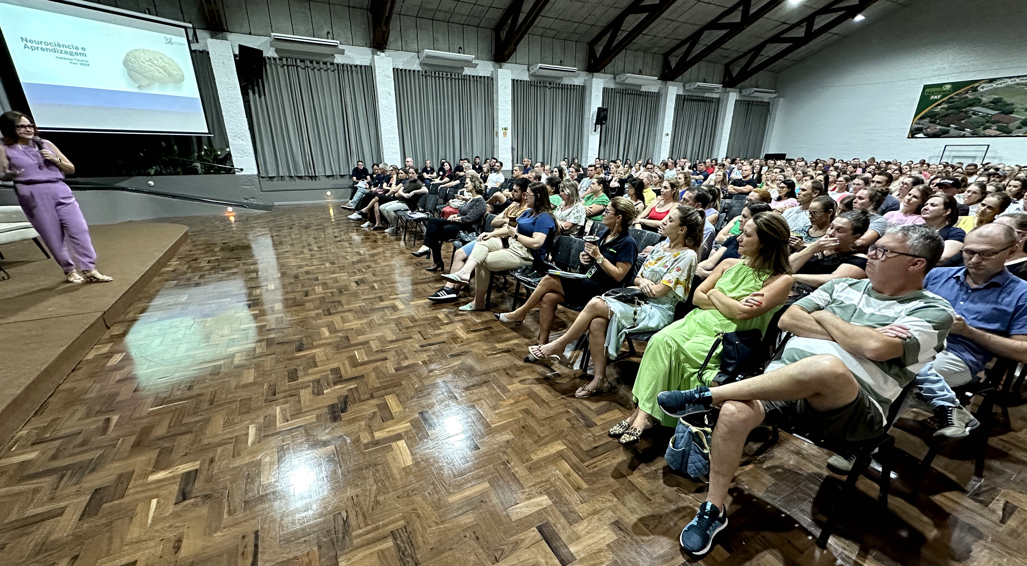 <p><span><span>como o cérebro funciona no processo de aquisição de uma língua adicional</span> foi tema da aula inaugural para pais e responsáveis de estudantes da Educação Infantil ao Ensino Médio do Colégio Teutônia. Num auditório lotado, o assunto foi abordado pela mestre em Educação, Vanessa Tenório, especialista em Marketing e em Neurociência e Comportamento, pesquisadora e autora de material didático para o contexto bilíngue.</span></p>