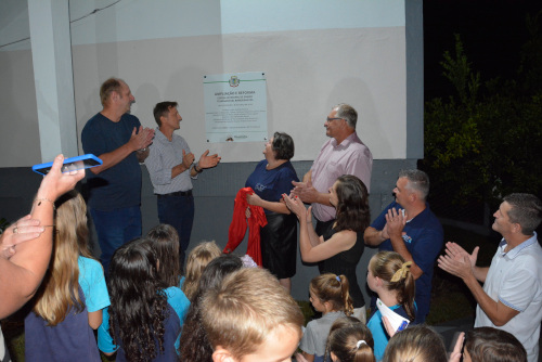 <p>Abrindo os pronunciamentos da noite, a diretora da EMEF Bandeirantes, Cátia Rex Brune, lembrou do quanto esta obra era aguardada por toda a comunidade escolar. “Celebrar a inauguração da reforma e ampliação da nossa escola faz passar um filme na cabeça. Éramos uma escola, há anos, pequenina e hoje estamos com 44 alunos matriculados. A ampliação da estrutura era uma grande necessidade e a Linha Frank foi beneficiada por este importante investimento. Obrigada por voltarem este olhar especial à nossa localidade”, enalteceu a diretora, também estendendo agradecimentos ao Centro Comunitário da localidade pelo espaço concedido enquanto a realização da obra.</p>