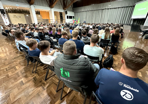 <p>Na noite de segunda-feira (04) ocorreu a aula inaugural da Educação Profissional do Colégio Teutônia. Reunidos no Auditório Central, os estudantes dos cursos Técnico em Agropecuária, Técnico em Eletrotécnica, Técnico em Eletromecânica e Técnico em Administração participaram de palestra sobre mercado de trabalho, proferida pela psicóloga Maria Lúcia Griebeler. A noite ainda contou com momento especial de acolhida e integração com lanche e música ao vivo no intervalo estendido, seguido de aula.</p>