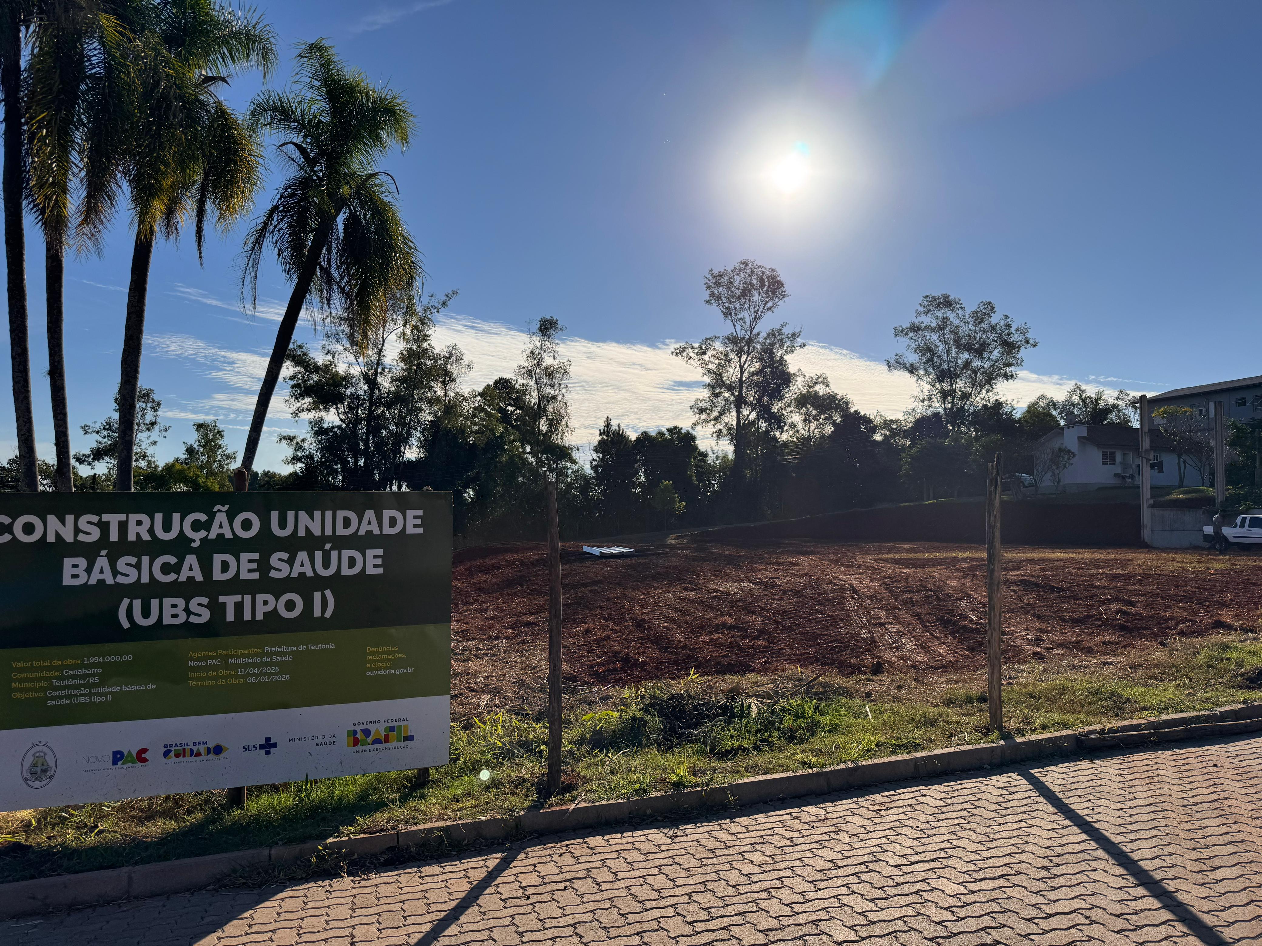 <p>A Construção da nova Unidade Básica de Saúde (UBS) tipo 1, iniciou no final do mês de abril, com a preparação do terreno. O município de Teutônia foi contemplado pelo PAC Saúde, programa do governo federal, com o investimento integral da obra, no valor de R$ 1,994 milhão, do Ministério da Saúde.<br />A empresa vencedora da licitação, Damann Construtora e Urbanizadora, recebeu a ordem de início para execução da obra no dia 10 de abril, com previsão de entrega para o início do ano de 2026. O prédio, que terá 389,78m², será construído na Rua Dário Huve esquina com a Rua Noeli Closs Müller, no bairro Canabarro.<br /> O prefeito, Renato Airton Altmann destaca a importância de programas e parcerias. “É fundamental que tenhamos este vínculo de investimento com os demais órgãos, para que o nosso município se mantenha em amplo desenvolvimento, oferecendo serviços de excelência em saúde para os teutonienses”.</p>