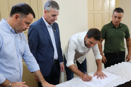 <p>Estiveram presentes no ato de assinatura o prefeito em exercício, Guilherme Cé, o Secretário Estadual da Cultura, Eduardo Loureiro, o secretário municipal de Cultura, Esporte, Lazer e Turismo, Carlos Rodrigo Reckziegel, o presidente da Câmara de Vereadores, Oilquer Soares dos Santos (Neco Santos), demais vereadores e comunidade em geral.</p>