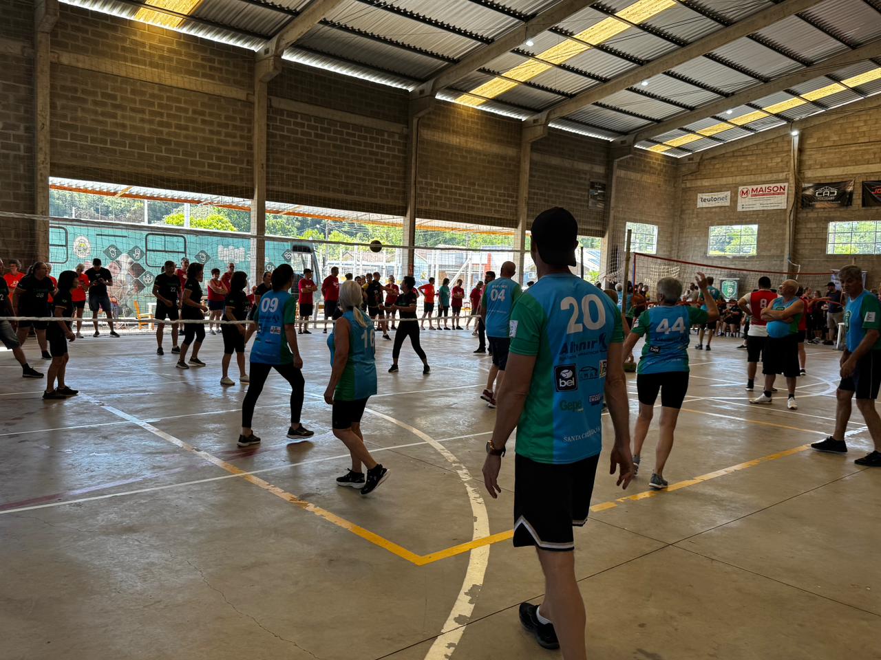 <p>O evento acontece nos turnos da manhã e tarde, na área coberta do Loteamento Arco Íris, e conta com a participação de 16 times, representando seis municípios:<br />- Teutônia<br />- ⁠Arroio do Meio<br />- ⁠Santa Cruz do Sul<br />- ⁠Estrela<br />- ⁠Westfália<br />- ⁠Paverama<br /><br /></p>