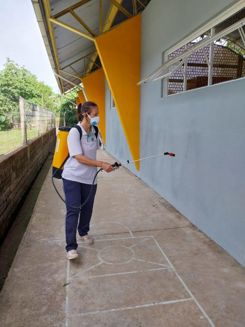 A Agente de Endemias do Município acompanha de perto a situação, realizando visitas e orientações às residências, além da aplicação de inseticida para reduzir a presença do mosquito: