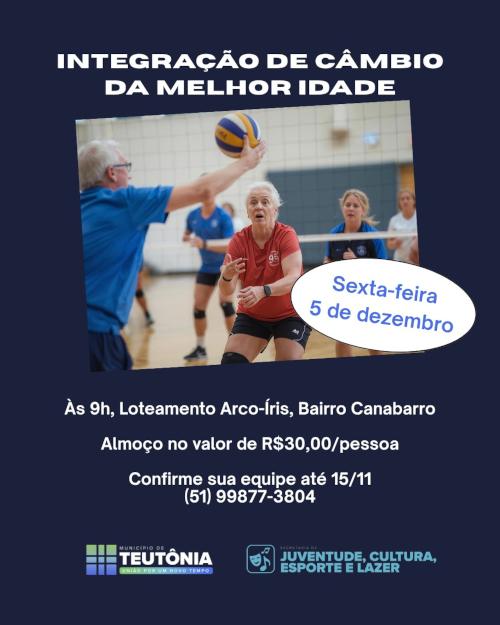 <p>A Secretaria de Juventude, Cultura, Esporte e Lazer convida grupos e participantes da melhor idade para um momento especial de integração e alegria: a Integração de Câmbio da Melhor Idade. O evento será um dia dedicado ao convívio, à prática de esportes, ao lazer e à promoção do bem-estar.</p>