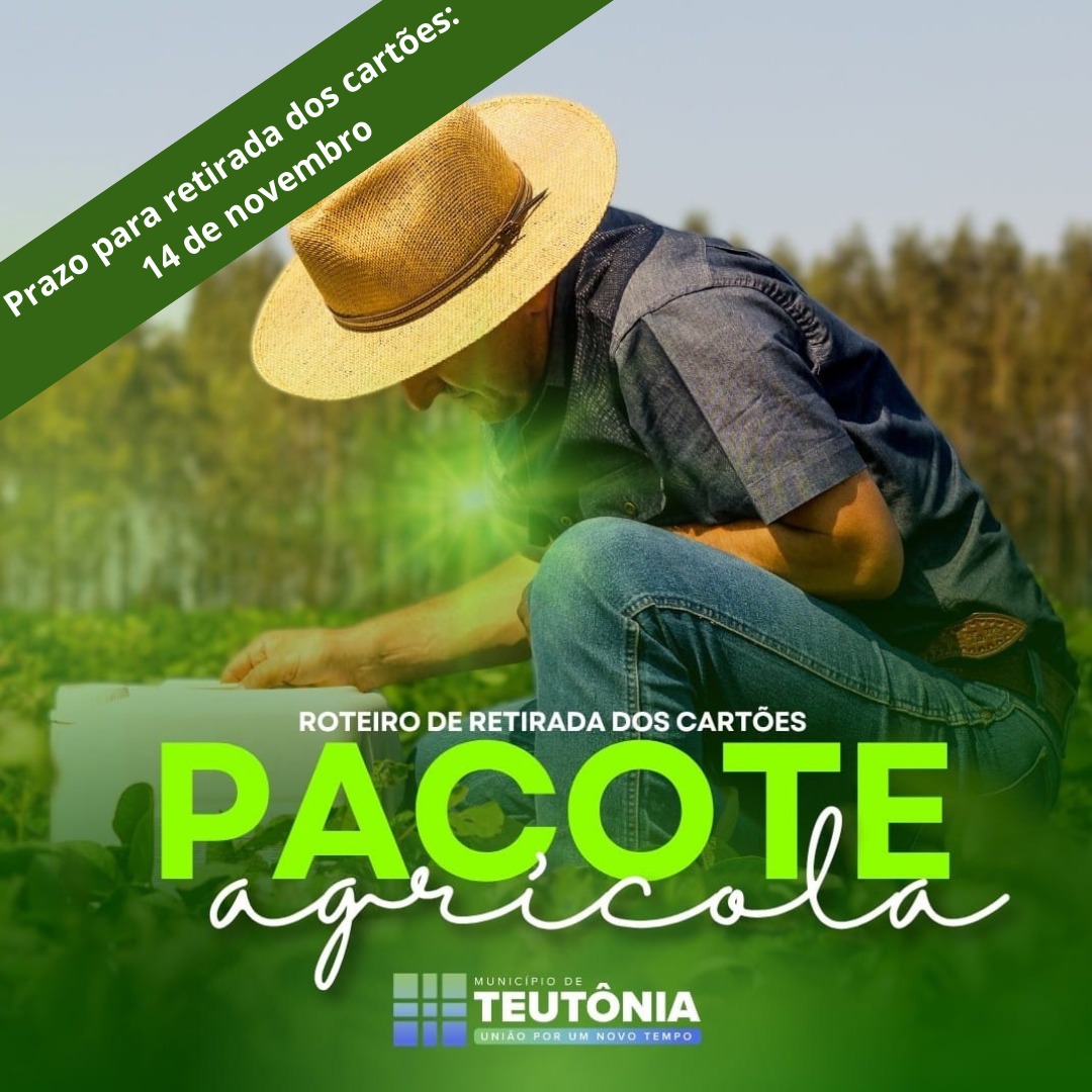 <p>A Secretaria Municipal de Agricultura e Meio Ambiente comunica a todos os agricultores beneficiários que o prazo para a retirada do cartão do Pacote Agrícola 2025 se encerra no próximo dia 14 de novembro. Após esta data, não será mais possível sacar o benefício.</p>