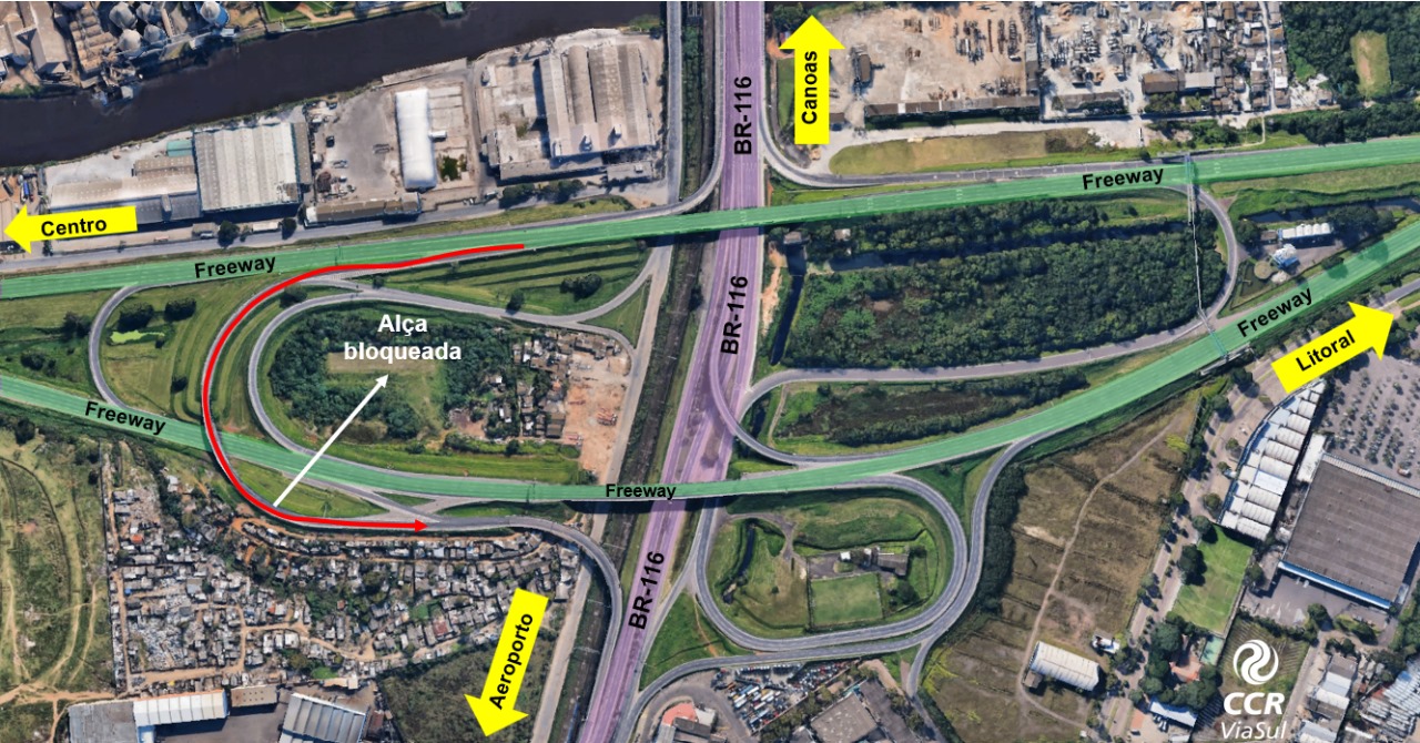 <p>Por isso, a orientação da Concessionária é de que motoristas que queiram utilizar a alça que dá acesso ao aeroporto pela Avenida Zaida Jarros busquem caminhos alternativos durante a realização das atividades. Da mesma forma, também será bloqueada a alça de ingresso da Freeway pela pista Leste (sentido litoral) em direção à Avenida Zaida Jarros.</p>